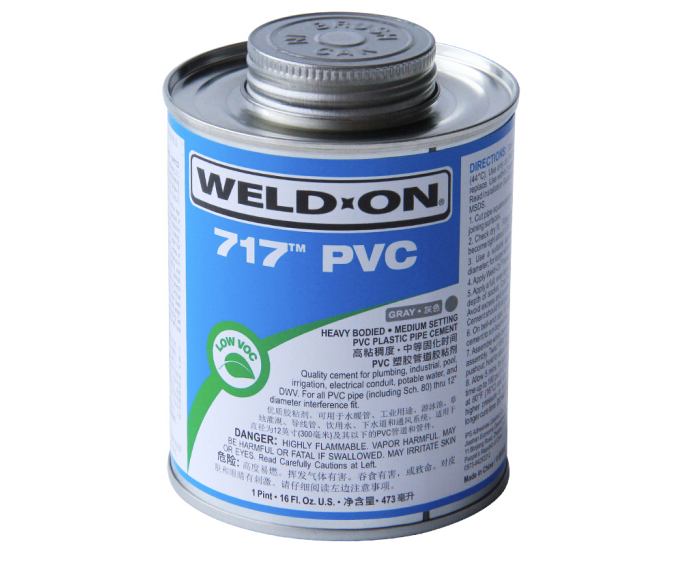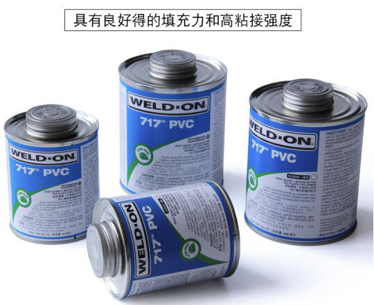 WELD-ON 717是一种灰色或透明、高粘稠度、中等干化时间的高强度PVC溶剂粘胶,这种溶剂粘胶用于粘接包括Schedule 80规格在内的干涉良好的PVC管件和管道直达12英寸直径,无压系统可达到18英寸。本产品对于大口径管道的空隙填补性能良好,
