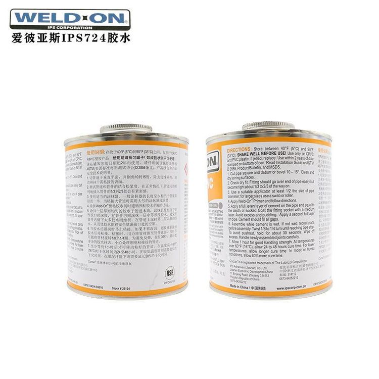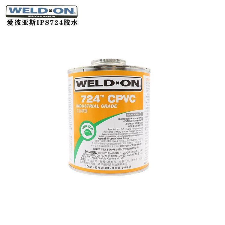 Weld-On? 724? 灰色高等粘度,中等干化时间,适合12’’(DN300)以下所有规格受口松紧适中的CPVC管和管配件。设计用于包括次氯酸盐溶液在内的严苛的化学腐蚀环境,在废水和水处理工业领域有优秀的表现,同时可以用于PVC化工管道系统,符合