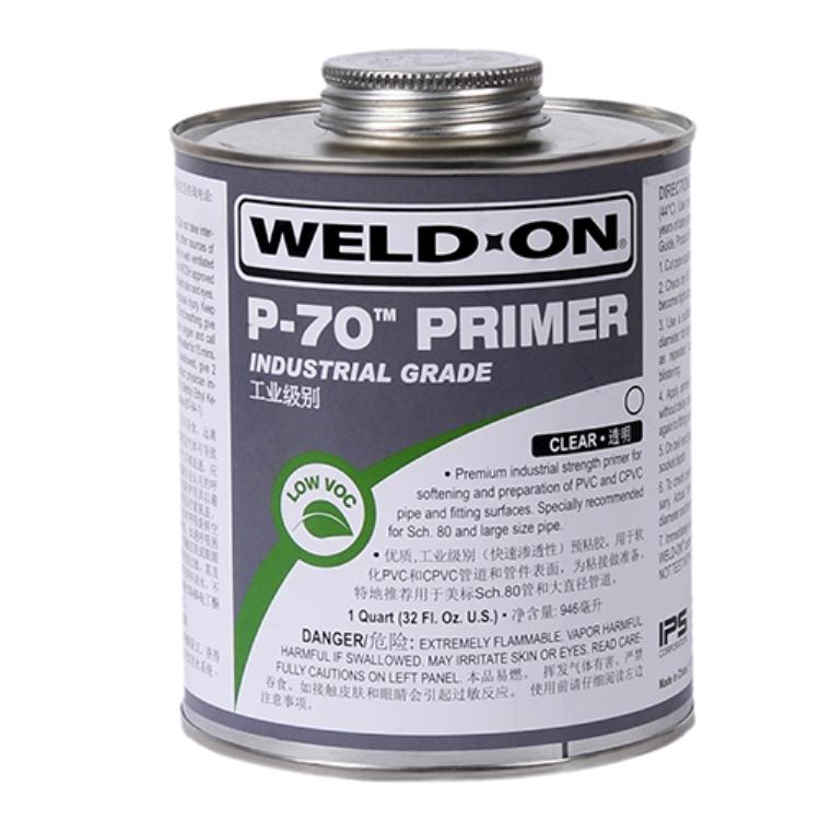 WELD-ON? P-70?工业级预粘胶 紫色/透明:高档,工业级,适当的low VOC预粘胶对于的PVC和CPVC管的软化是非常重要的。特别推荐用在Schedule80( PN10及更高)的大口径管的应用。产品:P-70? br> 颜色:紫色